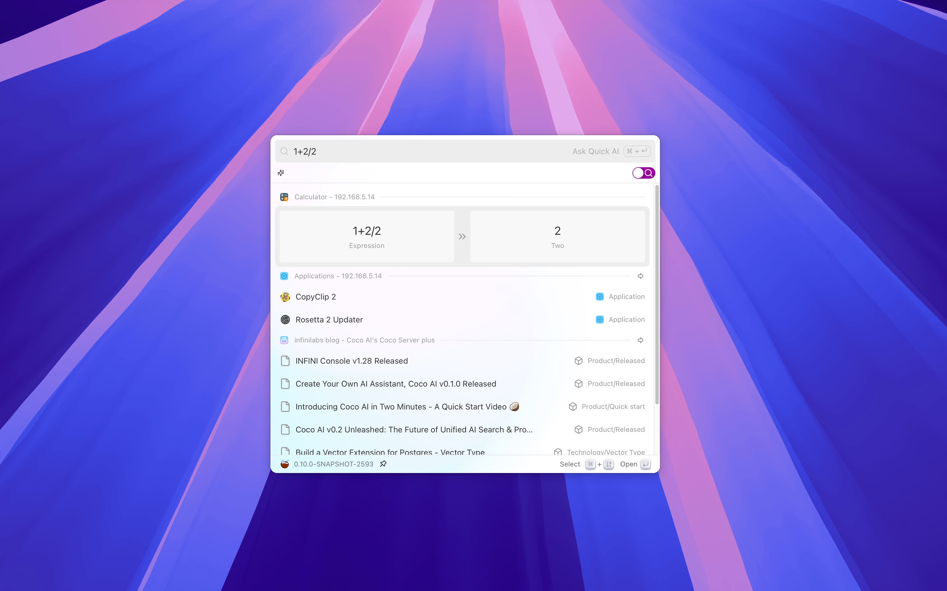 - Quick Calculation: Enter basic mathematical expressions in Coco AI’s input box, and the system will automatically calculate and display the result.