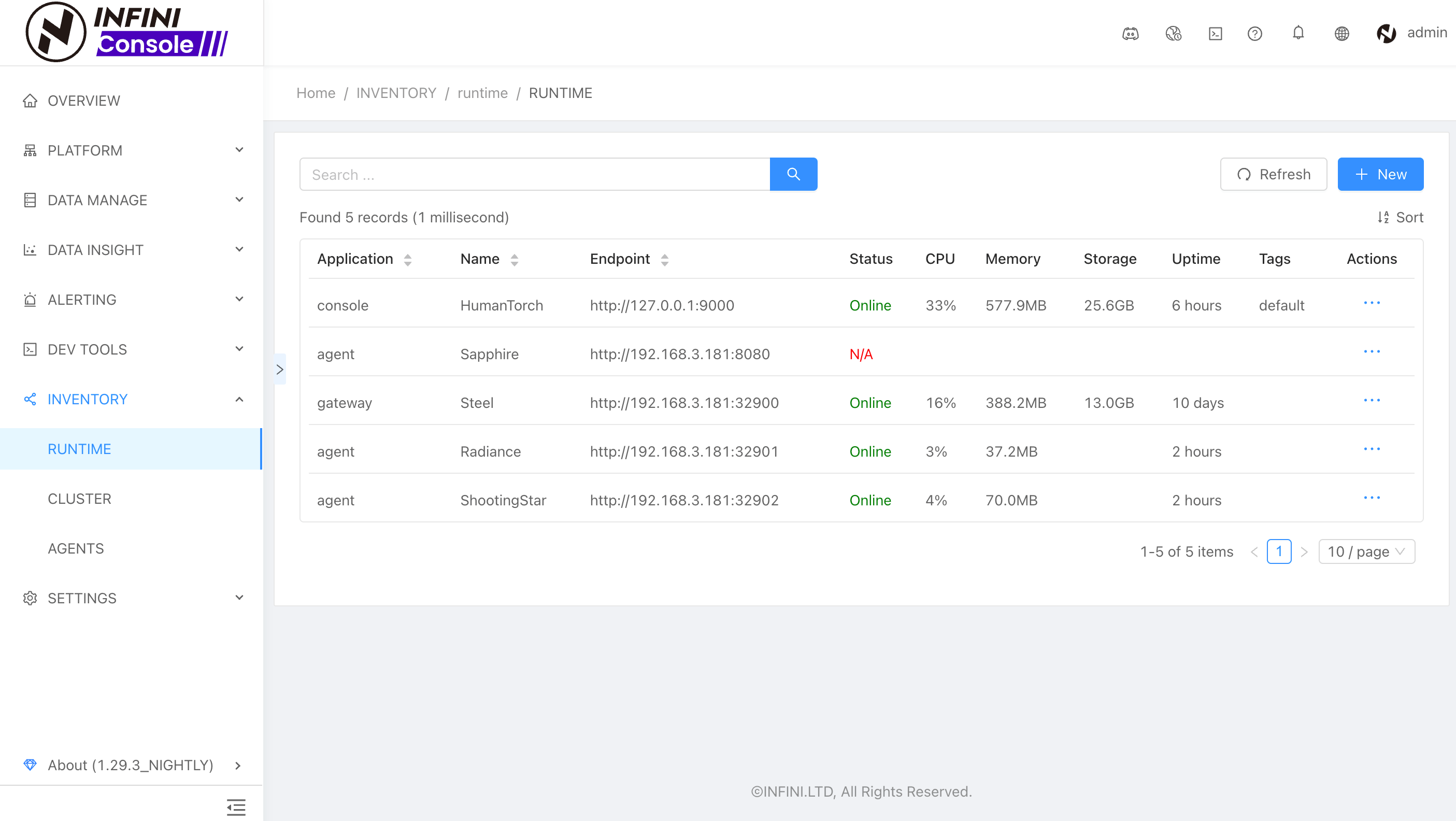 Runtime Management allows for quick and convenient administration of multiple runtime instances (such as gateway, console, agent, etc.).