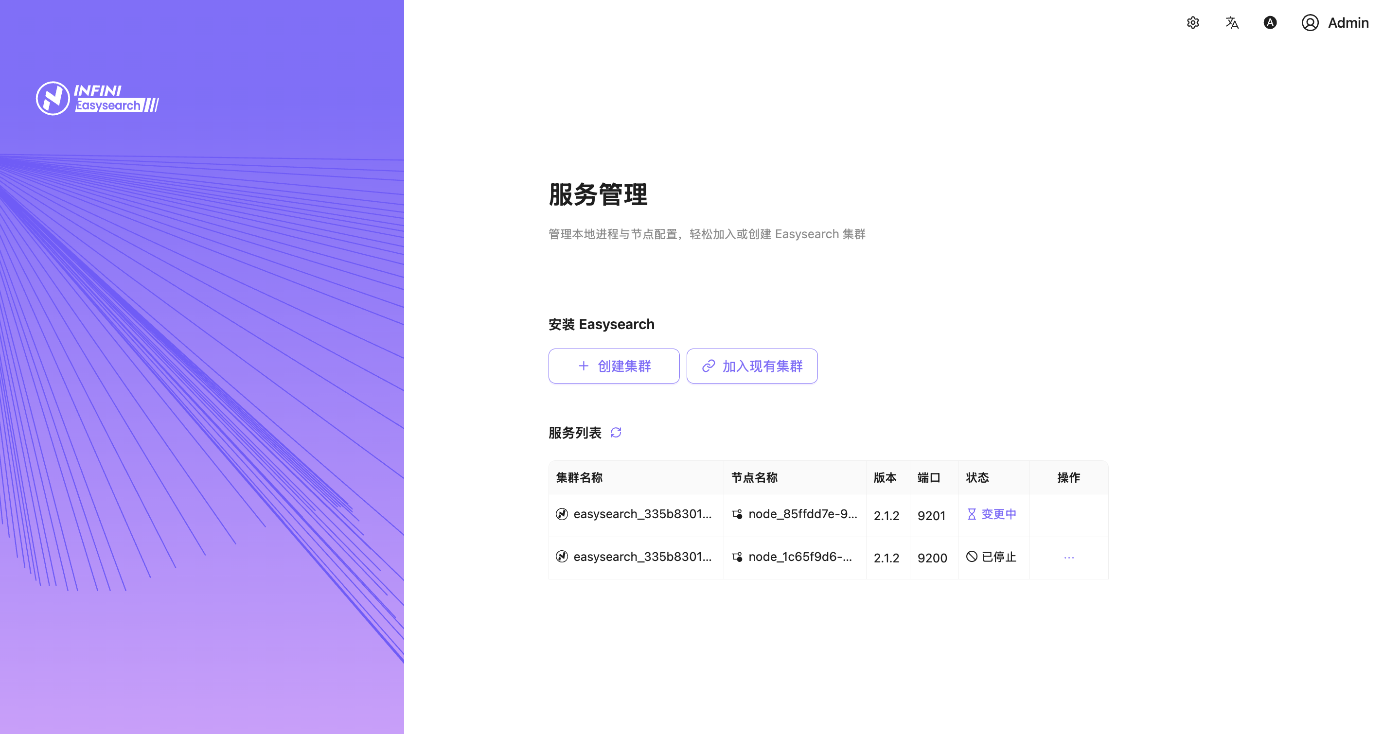 Agent 支持图形化一键拉起新集群(开发/生产双模式),用户无需手动编辑任何配置文件,通过图形界面即可完成 Easysearch 集群的安装、配置和日常管理。