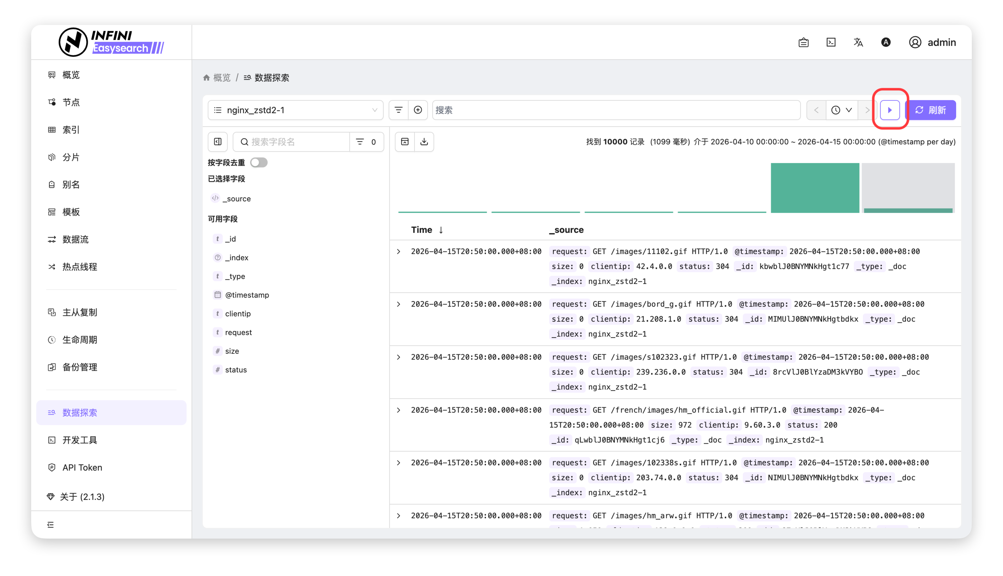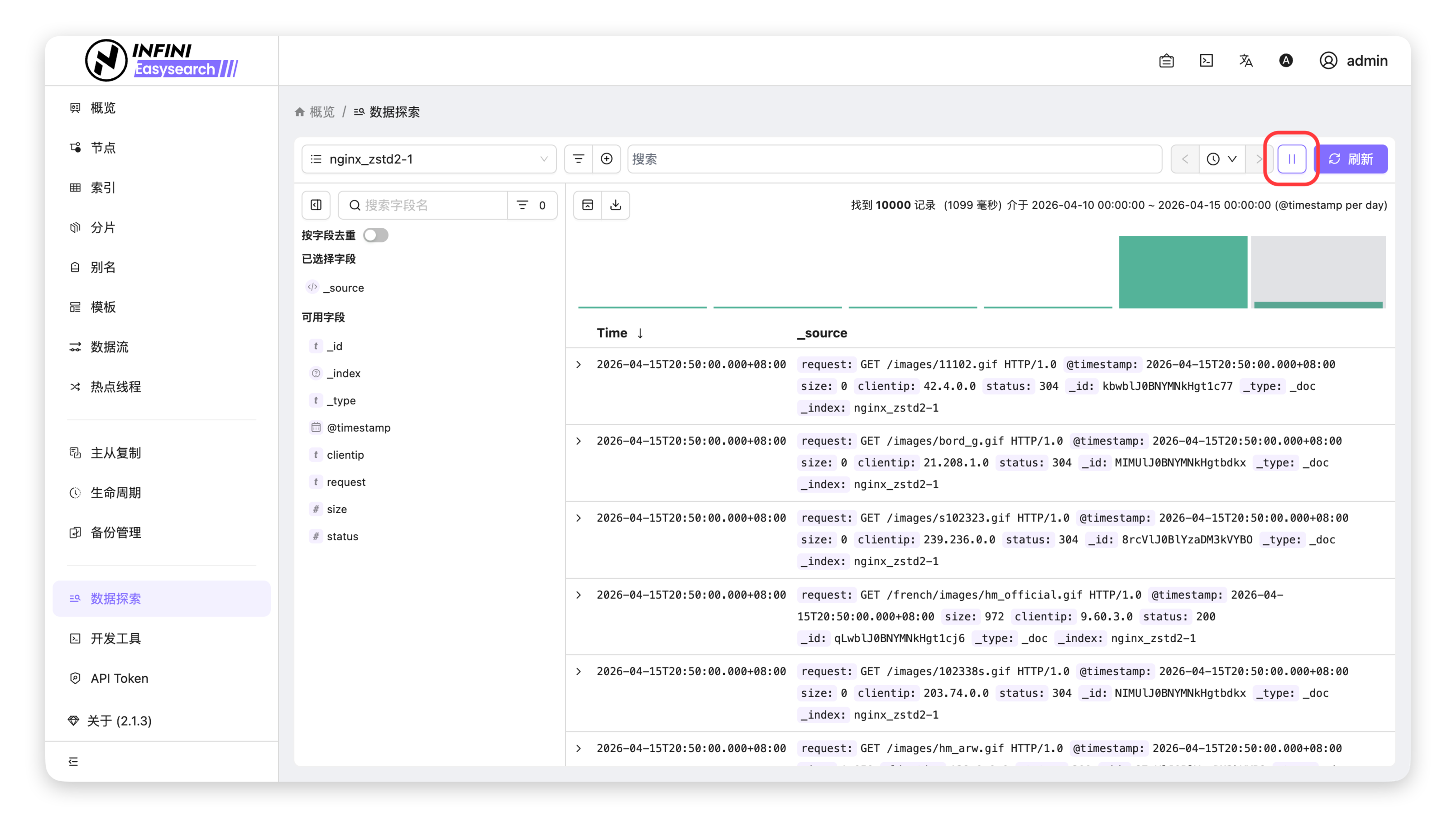 - 开启自动刷新:在数据探索页面右上角,点击播放图标(▶️),即可启动自动刷新,图标同步变为暂停样式(⏸️)。