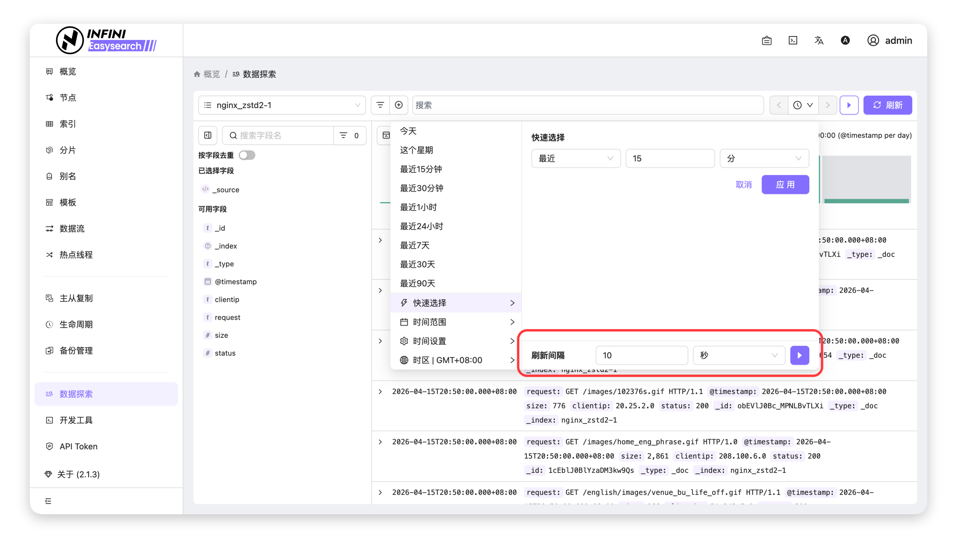 开启自动刷新后,数据探索页面将按设定的时间间隔自动更新查询结果。