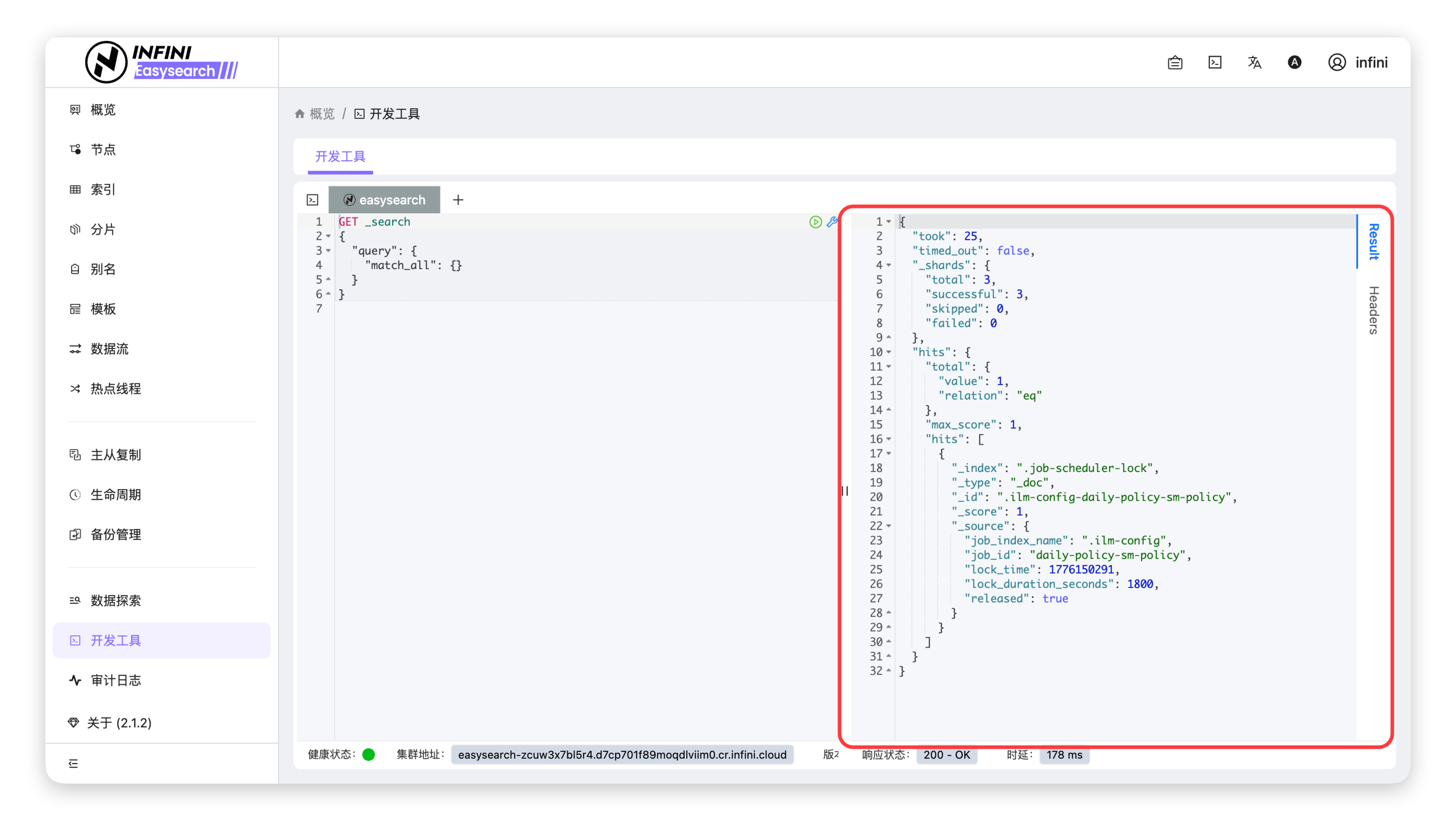 • 开发工具中的请求以当前登录用户的身份执行,请注意权限范围,避免在生产环境中执行写入或删除类操作。