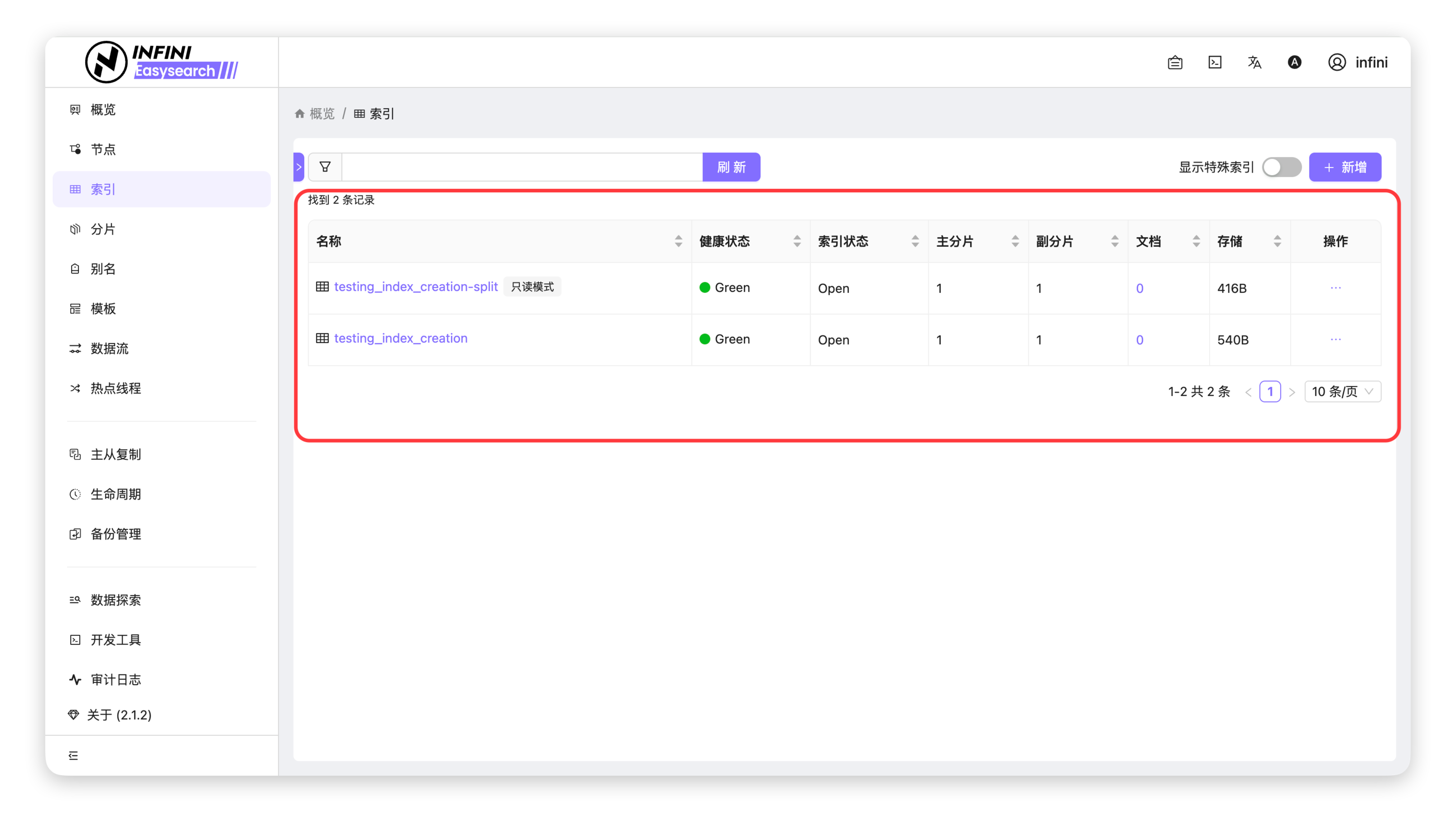 .开头的索引)可能导致集群功能异常,请谨慎操作。 - 如果只是暂时不需要该索引,建议使用「关闭索引」替代删除操作。