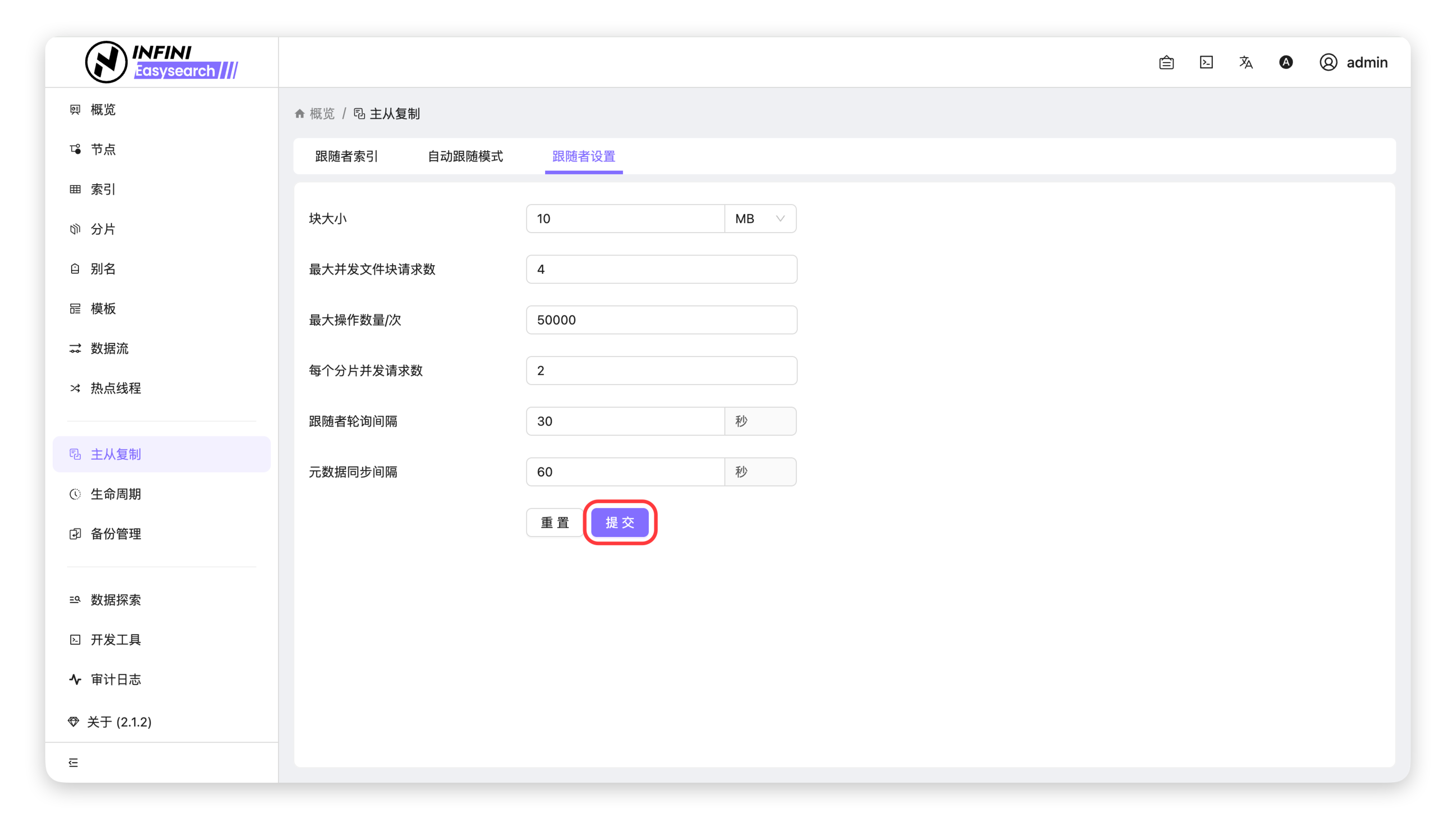 跟随者设置用于配置跨集群主从复制中跟随者索引的相关参数。