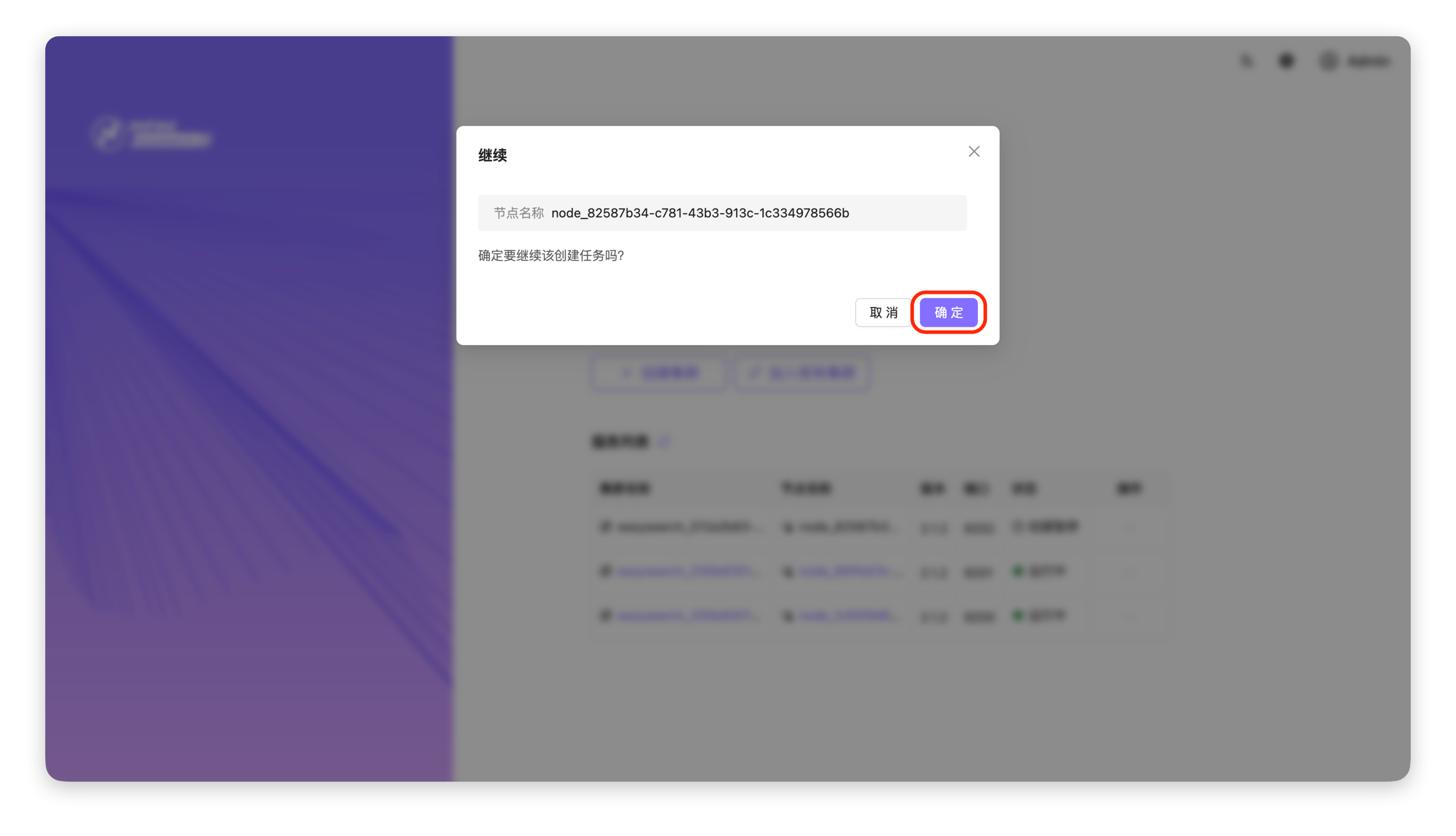- 确认继续操作:在弹出的确认窗口中,点击「确定」按钮,恢复该创建任务。