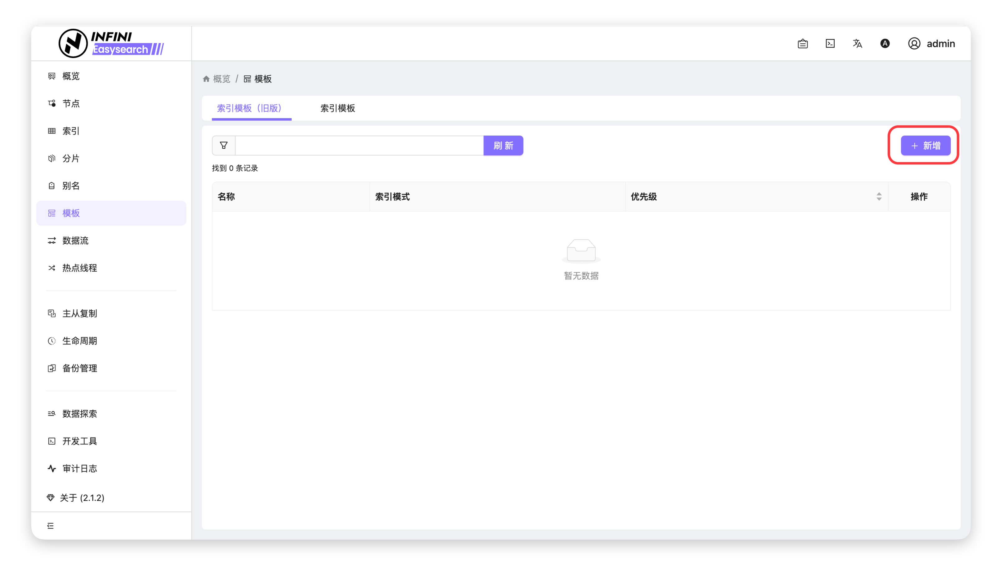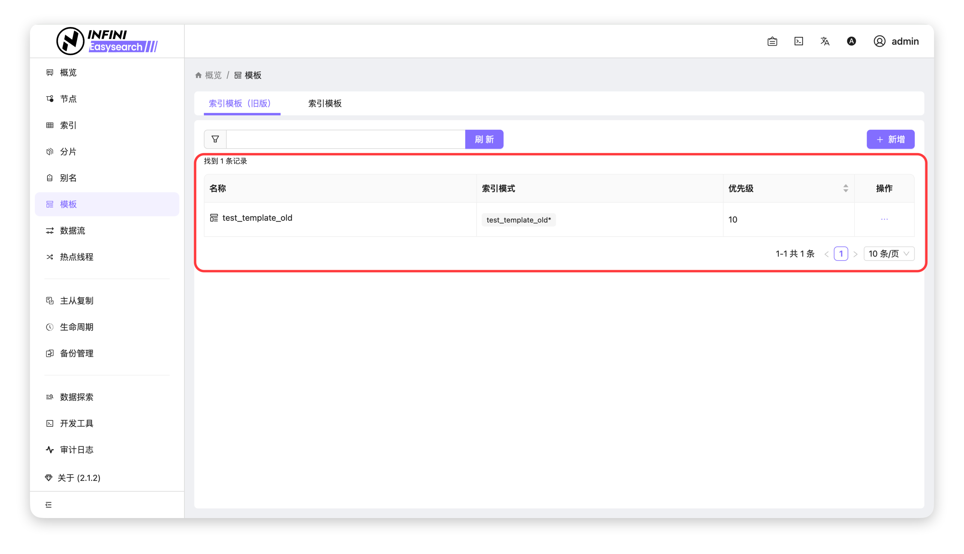 - 多个旧版模板匹配同一索引时,系统将按优先级数值从高到低合并配置,请合理设置优先级以避免配置冲突。