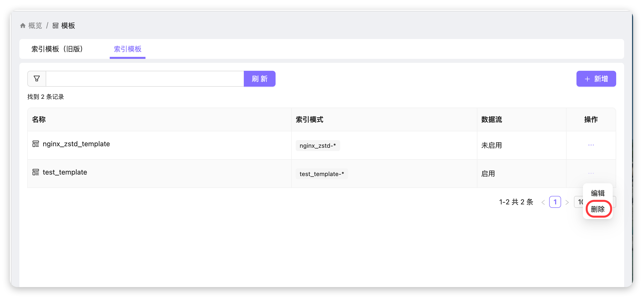 当索引模板不再需要时,可以通过 UI 进行删除操作。