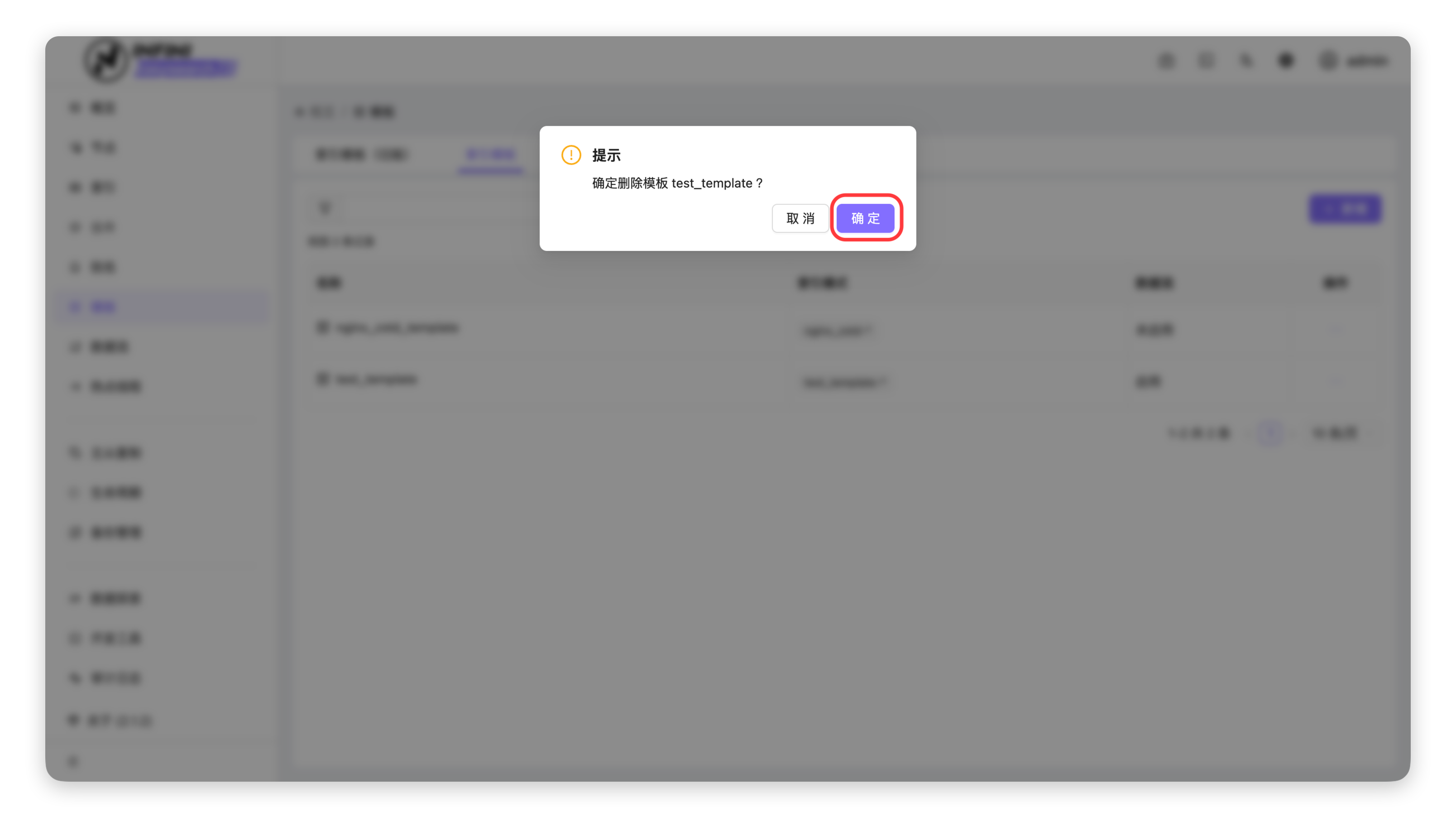 - 确认删除:在提示框中点击「确定」按钮,完成模板删除。