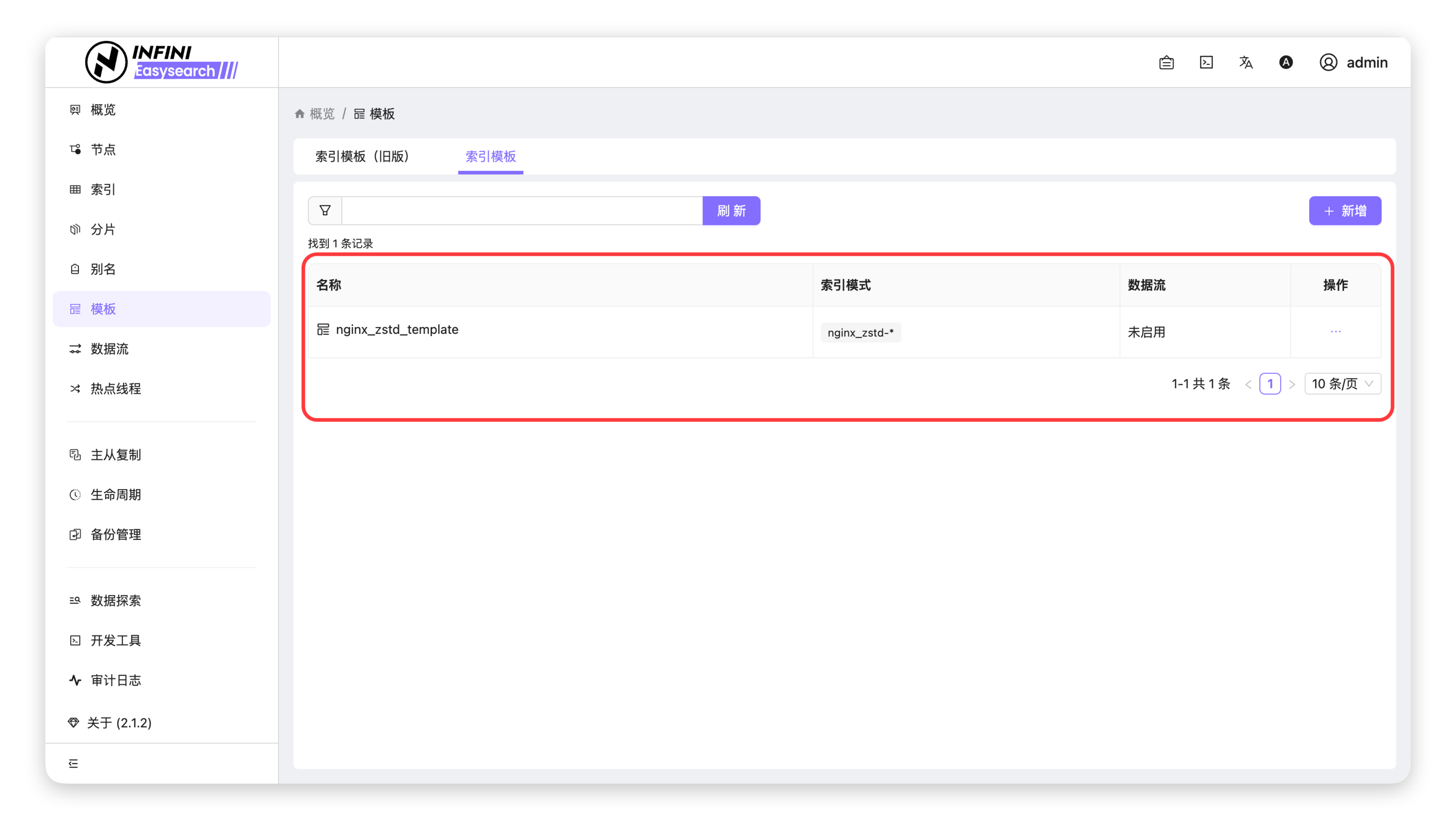 - 进入模板页面:在左侧导航栏点击「模板」,切换至「索引模板」标签页。