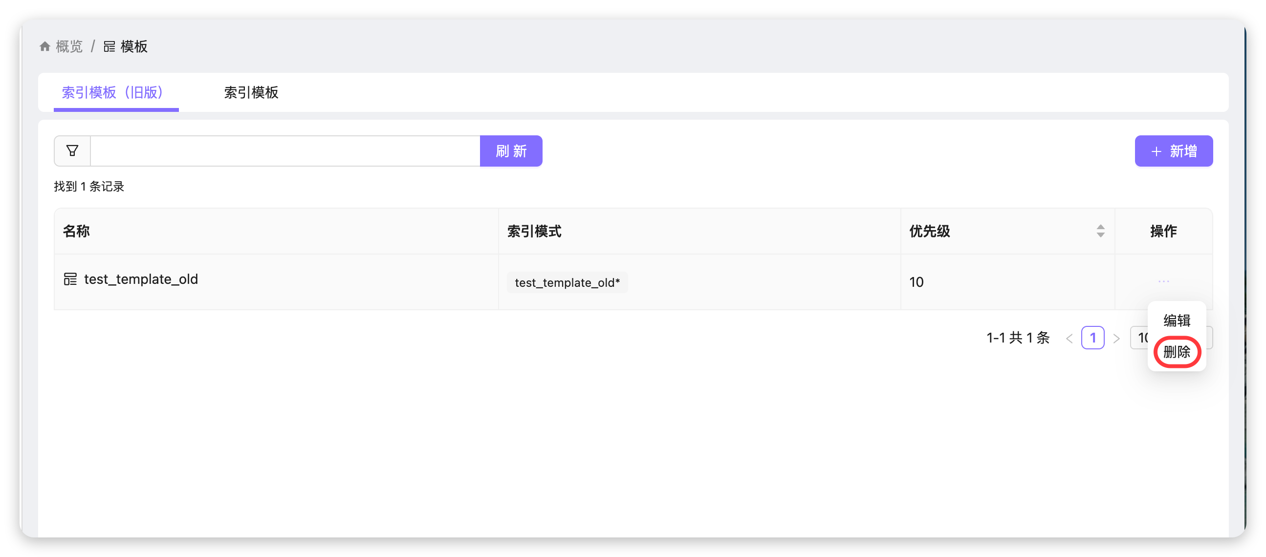 当旧版索引模板不再需要时,可以通过 UI 进行删除操作。