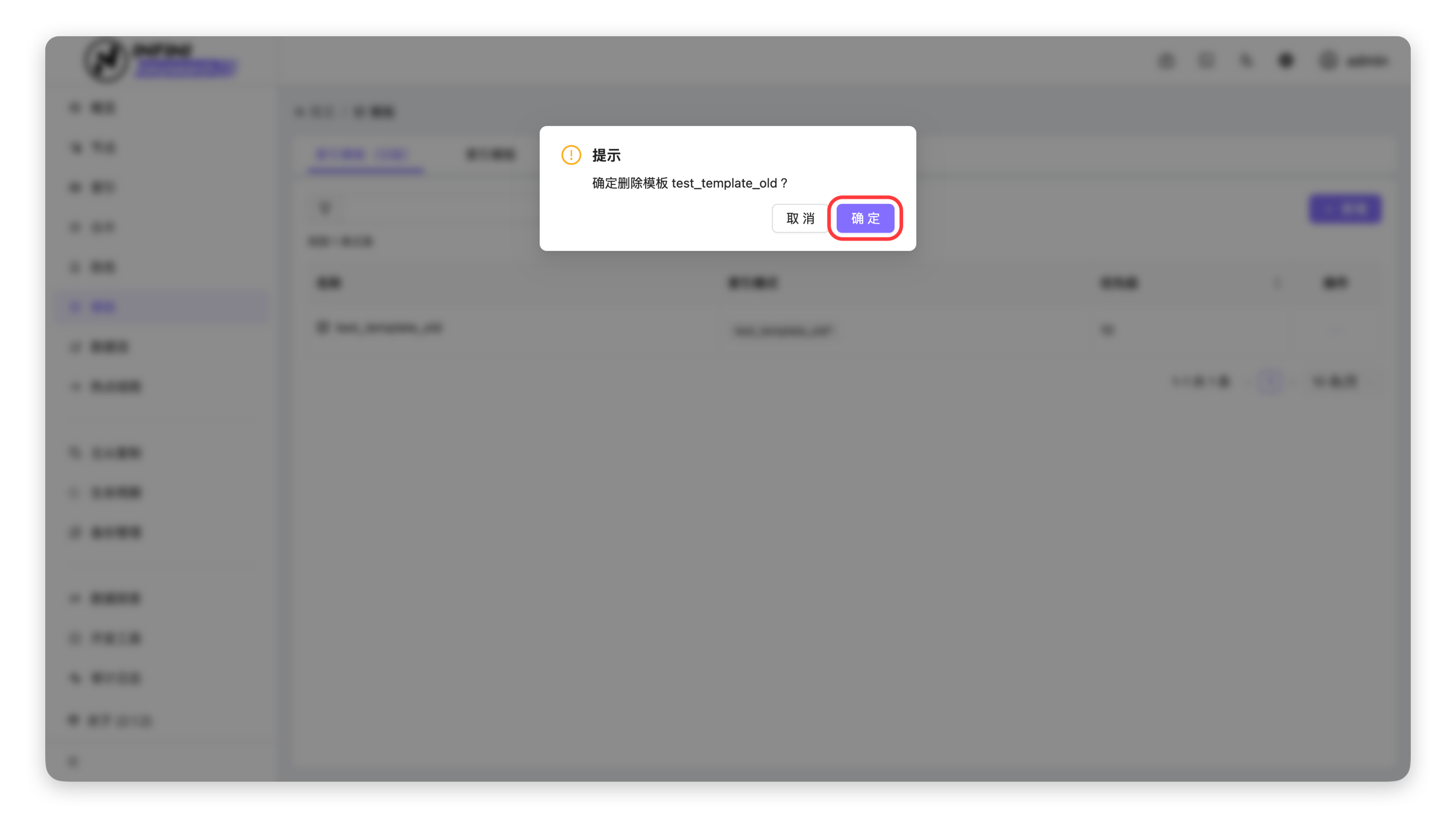 - 确认删除:在提示框中点击「确定」按钮,完成模板删除。